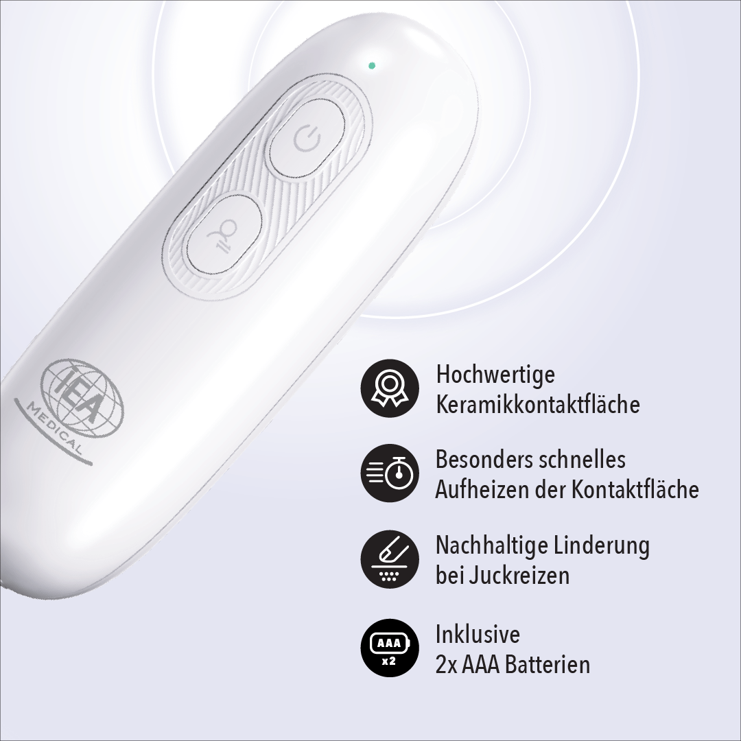Der Insektenstichheiler IBR30 bietet schnelle und natürliche Hilfe bei Juckreiz und Schwellungen nach Insektenstichen – und das ganz ohne Chemikalien. Er eignet sich für Erwachsene, Kinder (unter Aufsicht), Schwangere und Allergiker.