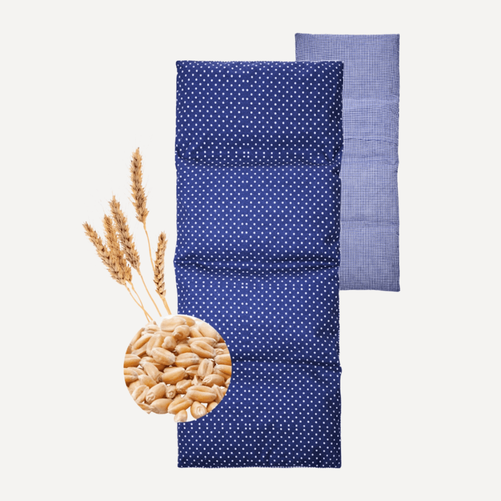 Gefüllt mit Weizenkörnern und umhüllt von einem Bezug aus 100 % Baumwolle vermittelt das Kissen ein natürliches Wärmeempfinden mit dezentem Getreideduft.