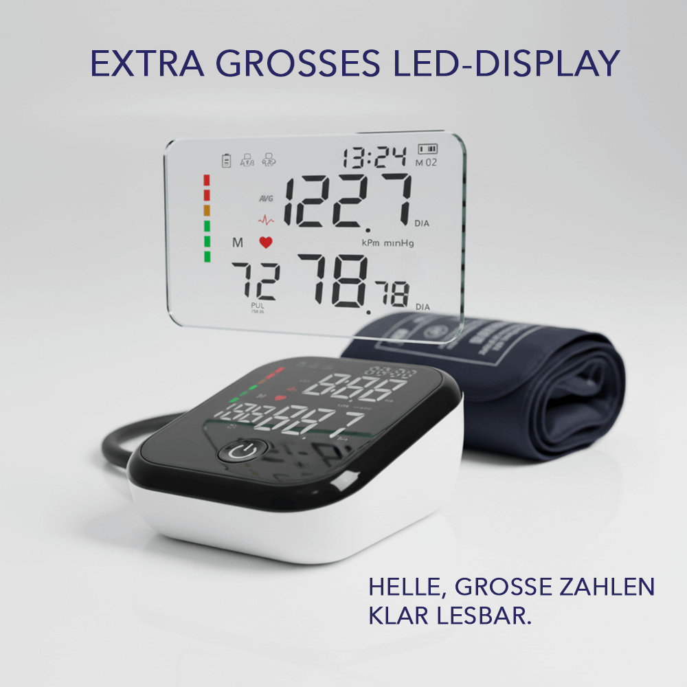 - TÜV-zertifiziertes Oberarm-Blutdruckmessgerät mit automatischer Messung und klarer Anzeige